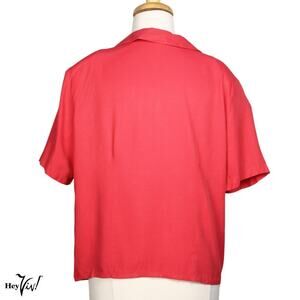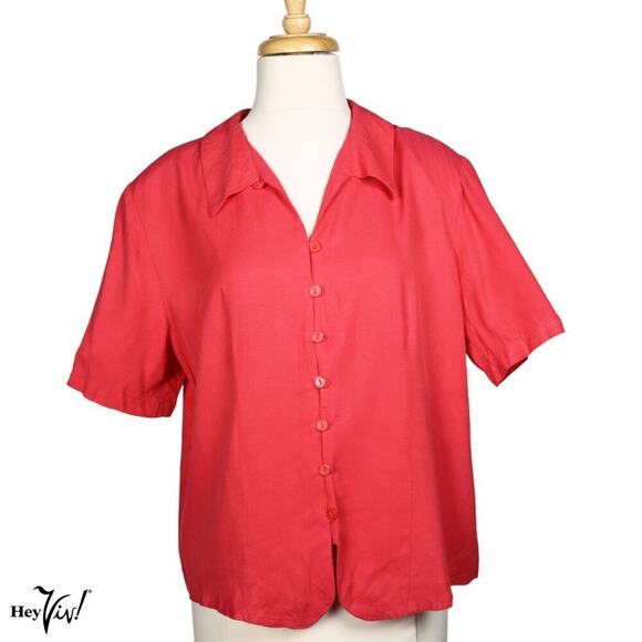 Vintage 80s Impressions Blouse Top Pink Rayon Padded Shoulders Size L - Hey Viv