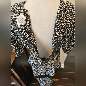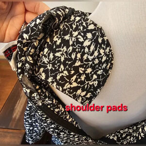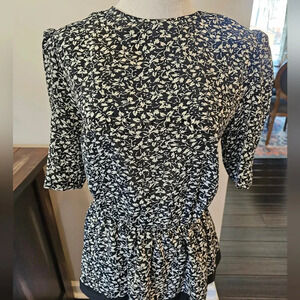 Vintage 80's In Cinq Women's Dress •Size 12• Made In USA Black Floral Ruffle with shoulder pads. Zips up in back. Runs small due to being vintage. Please see measurements in photos provided. I don't accept returns for items not fitting. Great Pre-owned Vintage condition. Cross posted. I ship out same or next day. Thanks for looking!