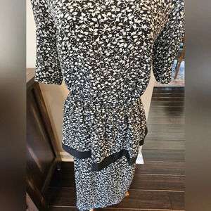 Vintage 80's In Cinq Women's Dress •Size 12• Made In USA Black Floral Ruffle