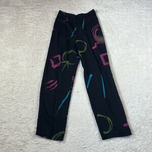 Vintage 80s Intriguing Threads Black and Abstract pleated pant suit, size 6, 8, small