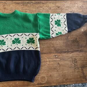 80s vintage green and navy Emerald Island brand Good luck Irish St Patty day crewneck sweater finds
