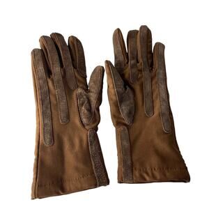 Vintage 80s Isotoner Brown Nylon Leather Driving Gloves S/M Lightweight Soft