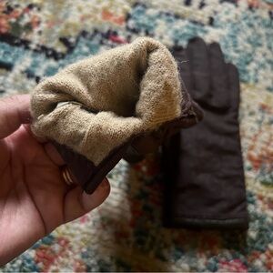 Vintage Aris Isotoner 80s nylon, elastane and genuine leather dark chocolate brown gloves. Very good vintage condition. Super soft red fleece lining. One size