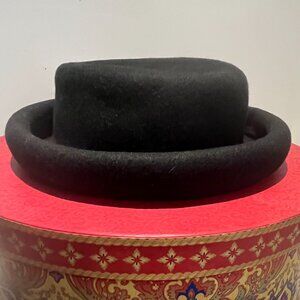 Vintage 80s Italy Black 100% Wool Bowler Brim Hat Medium Classic