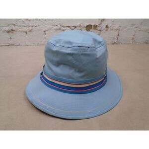 Vintage 80s Izod Lacoste Bucket Hat Blue Alligator Patch Logo Striped Size 7 1/4