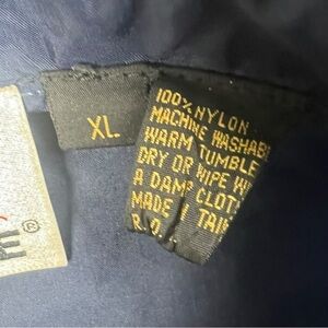 This Vintage 80’s Izod Lacoste Men’s Navy Nylon Windbreaker with Alligator Logo in XL size is a stylish and functional outerwear piece. Made with durable nylon outer shell and lined with cozy nylon, this mid-length jacket is perfect for casual occasions like travel, walking, golf, or hiking. The solid blue color and iconic alligator logo add a touch of retro flair, while the lightweight design ensures comfort and flexibility. This classic 80s-themed jacket is a must-have for any man looking to add a unique and vintage touch to their wardrobe.