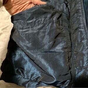 Keywords: vintage puffer jacket, 80s ski jacket, metallic blue jacket, duck down coat, retro winter jacket, j gallery jacket, women’s medium puffer, vintage metallic coat, cold weather jacket, nylon shell puffer, ski snow jacket, warm insulated jacket, retro fashion coat, shoulder pad jacket, unique vintage outerwear