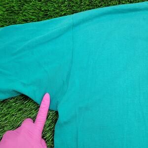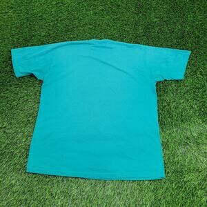 Vintage 80s JERZEES By Russell Corporation Blank Shirt L/XL 22x27 Blue Green Teal Single-Stitch Made in USA Cotton Poly 50/50 Tee