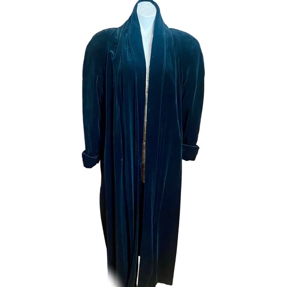 Vintage 80s JS Collections Black Velvet Long Opera Coat Jacket Duster Sz Small
