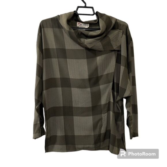 Vintage 80s Jac Dale Womens Green Plaid Cowl Neck Top Size 12/42