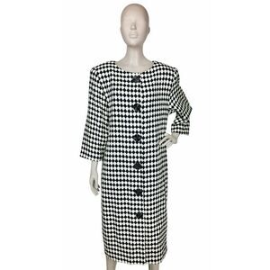 Vintage 80s Jackie Bernard MOD Monochrome Dress Coat Women's Size M/L