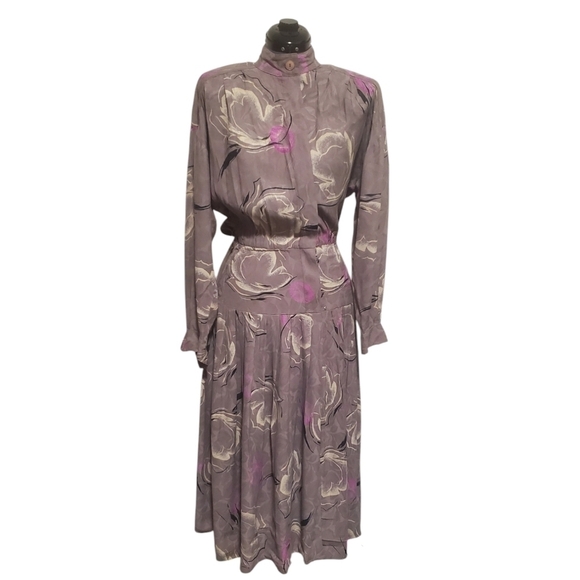 Vintage 80s Jackie Bernard for Eklectic Floral Midi Dress Gray Size Medium