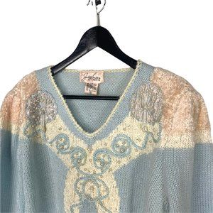 Vintage 80s Jaclyn Smith Pearl Embellished Knit Sweater Small
