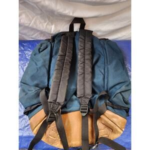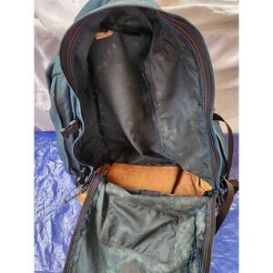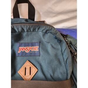 Vintage 80s Jansport Leather Bottom Hiking Backpack Daypack Outdoors USA Green