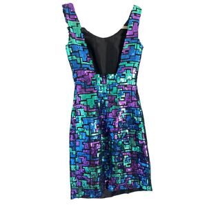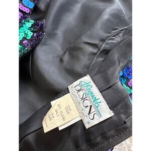 Vintage 80s Jay Reynolds Sequin Cocktail Dress Green Purple Blue & Black Sz 4