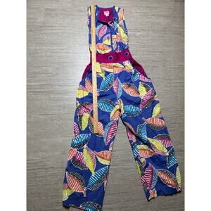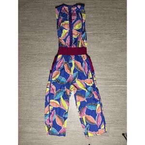 Vintage 80s Jeanne Marc Jumpsuit 4/5 P XS/S Cotton Knit Fall Leaves Pockets