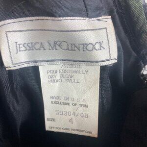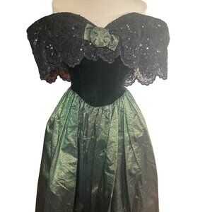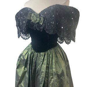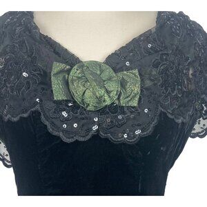 Vintage 80s Jessica McClintock Prom Dress 4 Black Velvet Green Fairy Goth