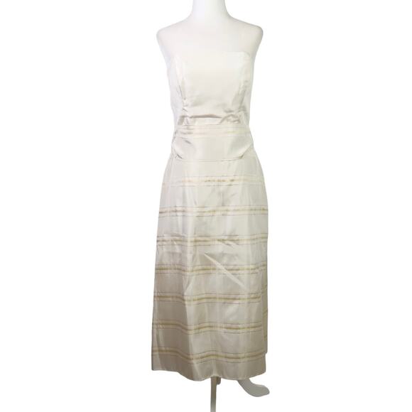 Vintage 80s Jim Hjelm cream and tan plaid taffeta strapless midi party dress 8