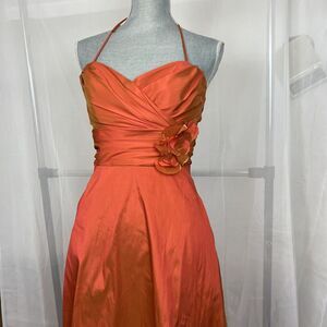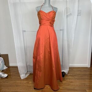 Vintage 80s Jim Hjelm silk taffeta halter neck midi dress