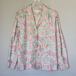 Vintage 80s Jim Thompson 100% Silk Cottagecore Pastel Button Down Blouse 8