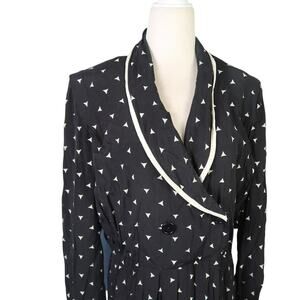 Vintage 80s Joan Martin Black and Cream Triangle Print Midi Dress L