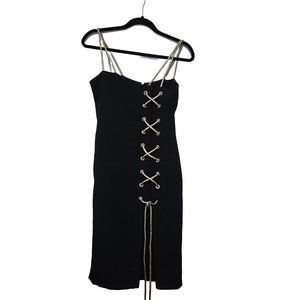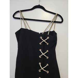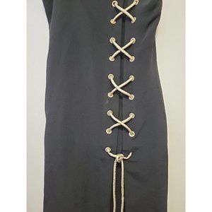 Vintage 80s Joan Raines I Magnum Shoelace Mini Dress Black Gold Small