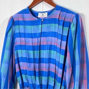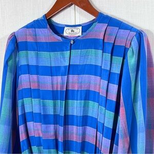 Vintage 80’s Jonathan Martin Pleated Button Striped Belted Dress Size 11/12