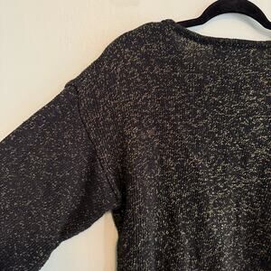 Vintage 80s Jordache Studio Sweater Womens M Black Cozy Metallic Dog Patch Art