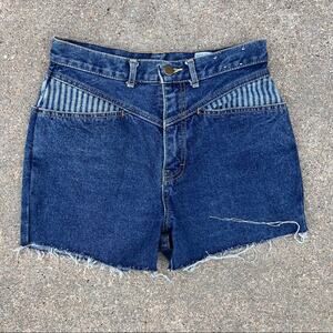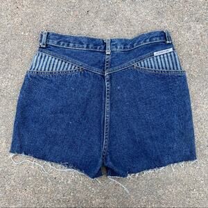 Vintage 80s Jordache high rise bare back railroad stripe cutoff Jean shorts