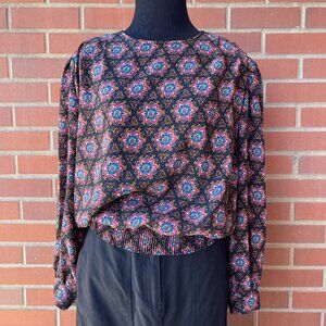 Vintage 80s Jordan Abstract Floral Printed Elastic Waist Blouse | Size L/XL