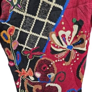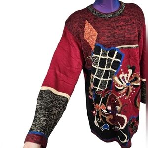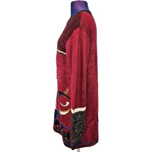 Vintage 80s Joyce Burgundy Abstract Christmas Sweater Dress Size Large Women's