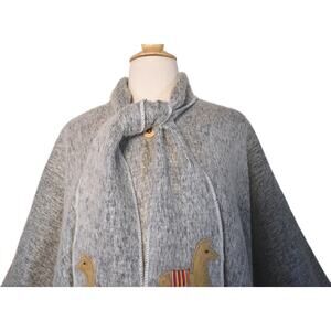 Vintage 80s Judith Andrea Gray Wool Alpaca Applique Scarf Neck Cape Poncho