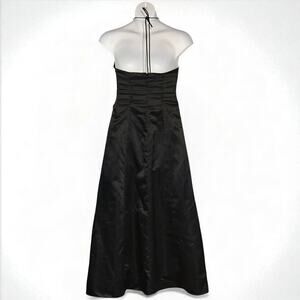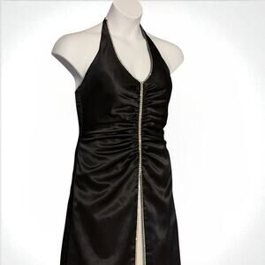 Vintage 80s Jump Apparel Black Halter Prom Gown 11/12 Rhinestone Trim Crinoline