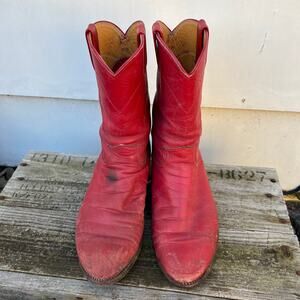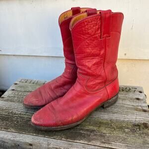 Vintage 80s Justin Boots Red Roper Pull On Boots
