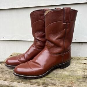 Vintage 80s Justin Cognac Brown Roper Cowboy Boots 9B