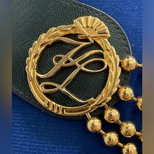 Vintage 80s KARL LAGERFELD Green/Gold Iconic Logo Belt, Made In Paris France
