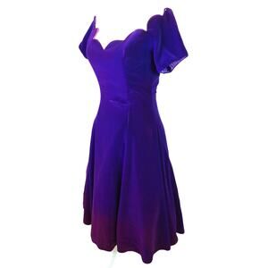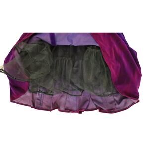 Pit to pit: 16", Waist: 13", Length 38". BEAUTIFUL! Deep plum purple with ombre pink detail! Tulle under for a slight flare! Made in the USA! Has slight stretch. Vintage 80s Karen Lucas For Niki Purple Pink Ombre Velvet Off Shoulder Dress 8