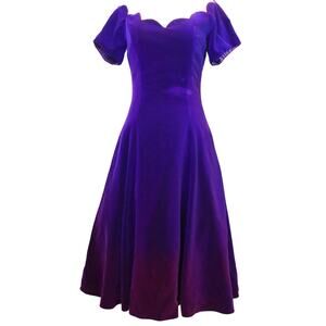 Vintage 80s Karen Lucas For Niki Purple Pink Ombre Velvet Off Shoulder Dress 8