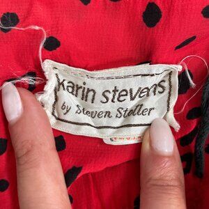 Tags: #vintage #80sdress #vintagedress #karinstevens #reddress #midi #cottagecore #retro #abstractprint #valentinesday #springdress #vintagestyle #1980s