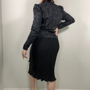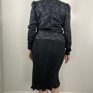 Vintage 80s Kathy J Black Midi Dress - Size 8 - Layered to look like a top and pleated skirt combo - zips in back - excellent vintage condition!