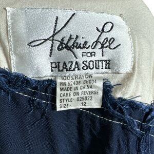 This vintage Kathy Lee dress from the 1980s is a beautiful and rare find for any collector or fashion enthusiast. With its Victorian style and modest maxi length, this dress is perfect for special occasions or everyday wear. The navy blue color and rayon material add to its unique charm, while its original design and craftsmanship make it a one-of-a-kind piece.