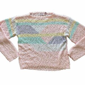 Vintage 80s #Kawaii #FairyKei #Pastel Pink Chunky Knit Sweater Geometric Size L