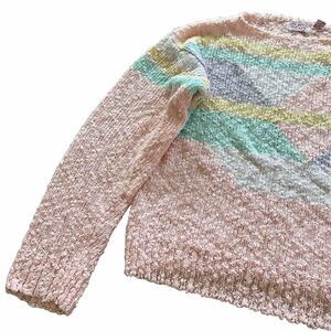 Vintage 80s Kawaii Fairy Kei Pastel Pink Chunky Knit Sweater Geometric Size L