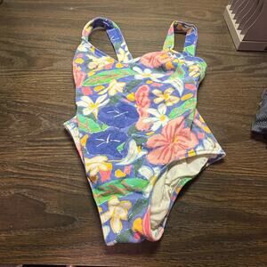 Vintage 80s Ken Done Art & Design Floral Print One Piece Swimsuit