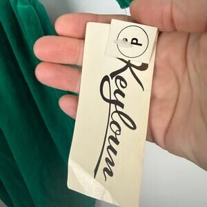 Step back in time with this stunning vintage Keyloun jumpsuit from the 80s! This green velour jumpsuit features a stylish zip-up front and fun striped detailing, perfect for adding a touch of retro flair to your wardrobe. New with tags (deadstock). Markes size Petite. Please see measurements to ensure preferred fit.