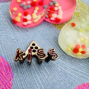 Vintage 1980s earring jackets. This pair spells out "KISS" in red enamel. The earrings are gold metal. Add a your favorite stud earrings to the jackets for a fun 80s look! Each jacket measures .75" long and wide. There are four hole options on the jacket to align to your preferred style. In good vintage condition.