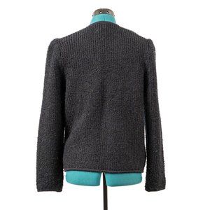 Vintage 80s Knit Cardigan Sweater Chunky Black Minimal Puff Gathered Shoulder Women's Large