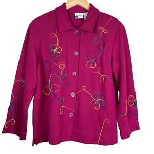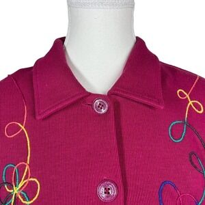Vintage 80’s Koret Cardigan Fuchsia Rainbow Embroidery Petite Medium