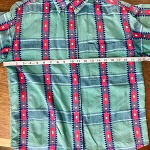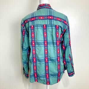 Vintage Shirt by Krazy Kat - Super cute southwest thems blouse, embroidered with a fun western-type pattern. Long sleeves, lightweight Cotton/ Rayon blend. Features unique green buttons which button up the front.