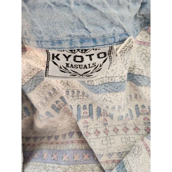 Vintage 1980s Kyoto Kasuals Womens Pastel Pink and Blue Button Up Short Sleeve Shirt Size Medium Granny